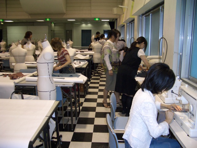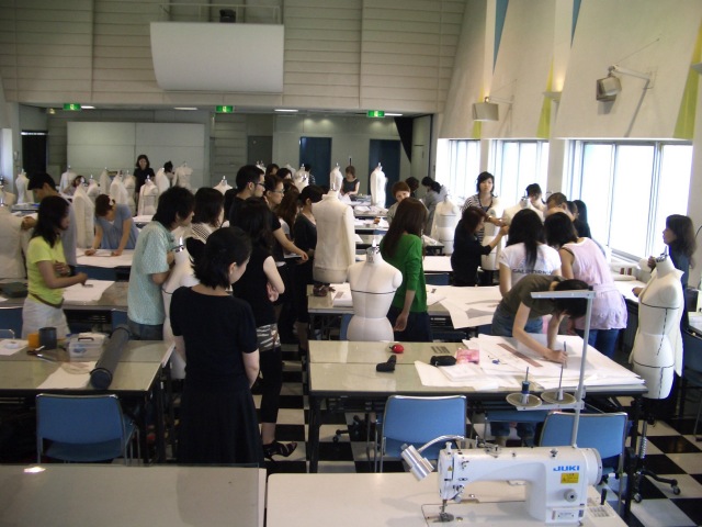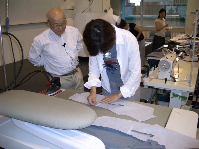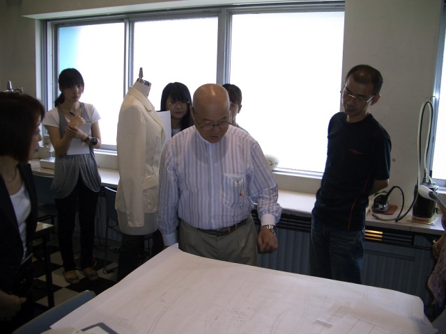 パターンメーカーからモデリストへ。高度な工業縫製を自分の手で実際に行なえるパターンメーカーは希少価値のある存在となっています。ファッション専門学校においても、企画、デザイン、パターン、縫製、販売と分断された教育指導を行なっている学校が多い中、将来的に要望されるであろうモデリスト育成への足がかりとして今回のパターン研修に参加した先生方も多く、高学年の学生達も日頃の授業より一歩先のお話しと実技に魅了されました。 |